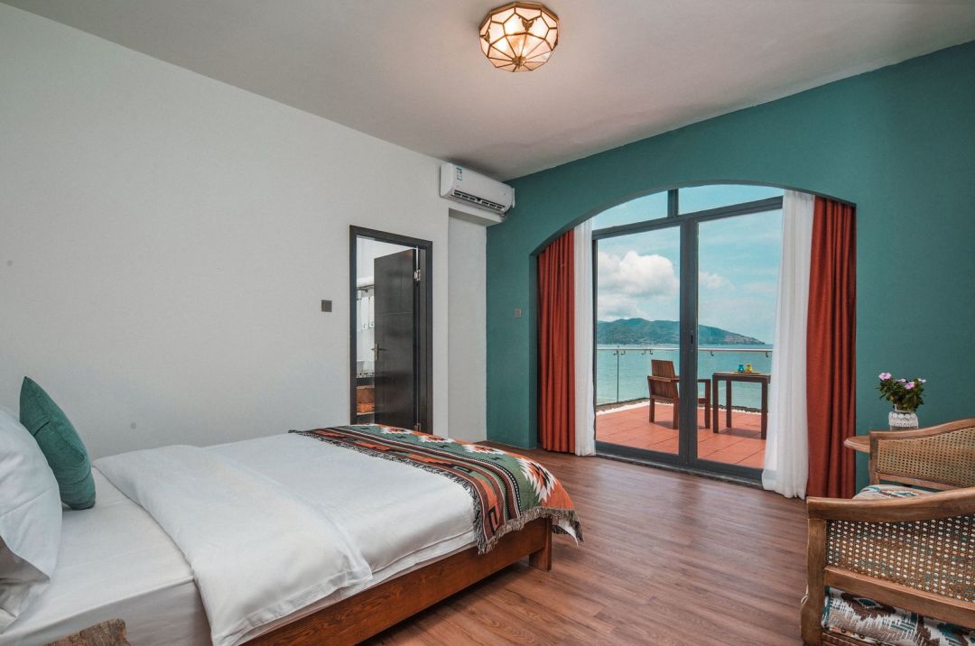 7号房 · 海景大床房带阳台 |含早餐|一线海景 古巴风情街 网红打卡点 沙滩日落 近较场尾