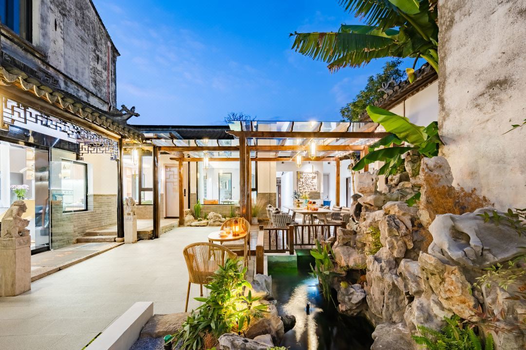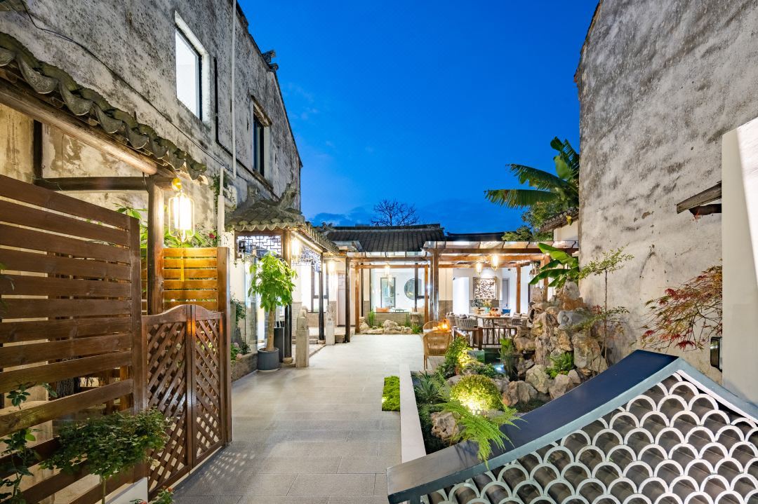 一花一世界,一居一格局。禅之雅悟,道之脱尘,水乳交融般汇入于本民宿。摈弃陈腐匠气,点滴间彰显简约与轻奢的暗合、以人为本的现代精致宜居。 无论于曲径通幽的庭院内观春花赏秋月,听流水抚奇石,还是品茗夜话,长坐远思,诗与远方的浪漫,远离尘嚣的结庐人间梦幻竟在眼前。 登临露台,远观白云苍狗,近望古镇连绵黛瓦鳞次栉比,酌一壶浊酒,乘半轮残月,豪情与婉约,千载梦回各自品味。