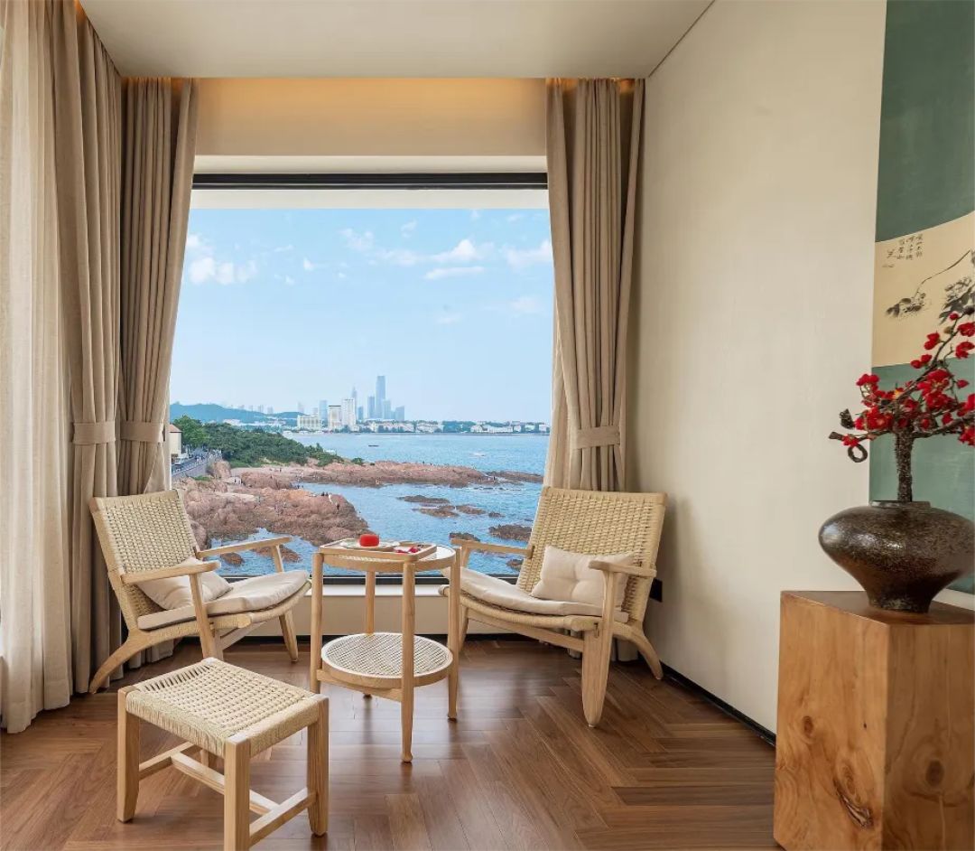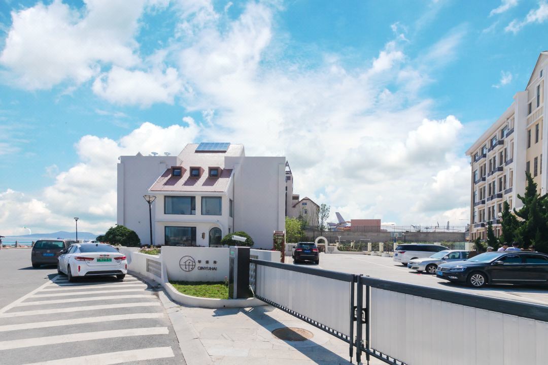 民宿是一个具有独特思考方式的简约诧寂度假民宿,位处于青岛网红打卡地琴屿路上的核心地标。建筑外观极具历史特色,自身已成迷人的景点。民宿是青岛海澜瑞庭酒店集团的高端民宿项目。酒店建筑历史悠久,其结构是采用钢筋混凝土框架方式建成。共分为地上四层,地下一层。建筑主体面积近2000平米,庭院部分1600平米,拥有独立停车场。白色主楼上保留青岛特色的红顶点缀,无论远观近瞰均给人惊叹的美妙印象。 因为我们很小。我们是与众不同的。所以我们提供一种无尽的生活享受。主理人与北京山隐设计集团联手经过6个月的精心设计,巧夺天工的将整个项目在保留原有建筑风格的基础上翻新了外墙颜色。将其外貌与附近周边环境完美结合,使得继续成为青岛很有特点的地标景点。庭院整体绿化覆盖率达到50%以上,种有名贵树种和大面积各种颜色的无尽夏花卉。 酒店房间风格独具。其中一层设有庭院房间三间,每间具有私享庭院,并有两间亲子户型。项目一层的东南侧设有独立的休闲咖啡主体餐厅,室内外面积共约200平米,供客人早餐。值得一提的还有别具一格的打卡旋转楼梯,设计风格非常迷人,是许多住店客人的留影景观。二层、三层分别设有海景房和无敌海景套房。四层设有独创的星空观景房,其整体风格为当代流行的微水泥结构建造。 顶层为私享露台,南侧可将整个琴屿路和大海尽收眼底,北侧客观海军博物馆全貌。尤其在每个晚霞时刻,是每位青岛当地人梦寐以求的观景位置。内部装修所用建筑材料均已环保理念为先,全部采用超国家标准的绿色环保材料。使每位客人无论老人、儿童和易过敏人群均无障碍享受大自然的馈赠。房间内的硬件设施也都非常考究,卫生间的全部卫浴系统均使用科勒黑色经典系列。并在每个海景套房配备科勒独立浴缸,可以在观赏海景的同时享受私汤带来的美妙。地下一层设有可供20人同时聚餐的多功能区,并设有独立的会议室、棋牌室、茶空间、健身房等。