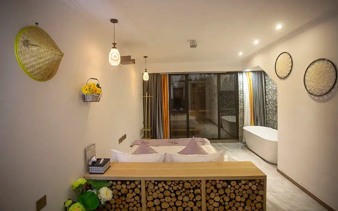 民宿位于浦东新区川沙新镇金家村周家宅81号,迪士尼度假区东大门,近唐黄路,驾车约5分钟可至迪士尼度假区,与迪士尼度假区一路之隔。 民宿由一栋90年代老上海乡村别墅改造而成,房间平均建筑面积30平米。每个房间都是不一样的风格,简约而大方的设计风格,宽敞舒适。床品一客一换,干净卫生,有品牌卫浴,超大投影仪、天猫精灵、电动窗帘、智能马桶、美的中央空调等高端配置! 民宿提供免费早餐,不限份数。迪士尼班车,附近地铁站随时免费接送,不限次数,不限时间。为了更好地给您安排行程,您需要提前一天跟客服确定好用餐时间和接送时间。 阳光充足的庭院内,有吊床、吊篮,供客人休息。还有小朋友爱的沙池、滑梯、泳池。能让家长放心的让孩子玩耍,楼顶的露台更是民宿的优势,可以很清晰地看到迪士尼城堡,每天晚上可以准时看到迪士尼的烟花,风景美不胜收。
