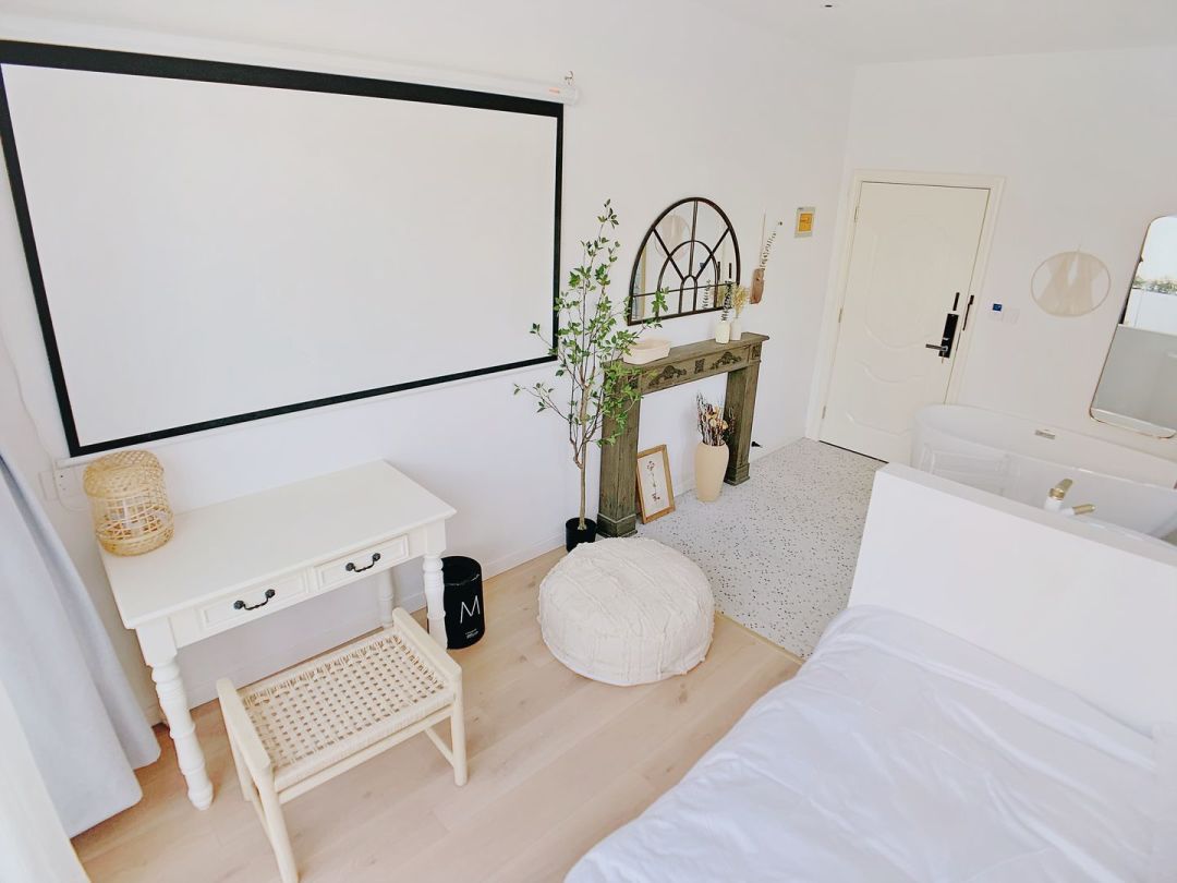 这是一家网红民宿设计师精心设计的,每一个细节都非常考究,独具匠心,居住于此,田间漫步,无尘世之干扰,无市井之喧嚣,是求得内心宁静,安住、的自在之所! 客栈民宿整体以北欧简约ins风格为主,休闲舒适。独立别墅精致,同时还融入了当代的设计理念。上海与白一期民宿静匿于人世间的游乐天堂,更是千万游客心目中占据重要地位的游玩景点—上海迪士尼乐园附近的小镇,10分钟路程,交通非常便利~ 民宿拥有不同风格的房间供您选择:浴缸投影的、露台浴缸的、网红星空顶的、榻榻米的;全景落地窗和温暖度最加分的大浴缸,给去迪士尼玩累了的你一个最完美的放松!处处可见的精心设计和管家式的服务,则给入住的客人带来润物细无声的愉悦~ 我们的房间配备更是贴心入微:智能刷卡门锁、空调、高清投影仪(百寸幕布)、户外全透明网红秋千、露天折叠遮阳伞、电吹风、小米烧水壶、千兆无线wifi、星级酒店床品(一客一换),免费提供高品质一次性洗漱用品。我们的公共区域配套有中西合并大厨房、大餐厅、洗衣房等一应俱全。 另外超大的室外滑滑梯,既能满足小孩子的痴迷,又能满足大人对童趣的回味!全透明网红太空秋千和精美的观景水池以及大堂休息区、餐厅,每个角落都很适合拍照哦~ 与白一期民宿会让您的旅行更加方便愉快,免费提供一次迪士尼乐园接送,双人早餐为了更好的给您安排行程,您需要提前一天跟管家确定好用餐和接送时间。