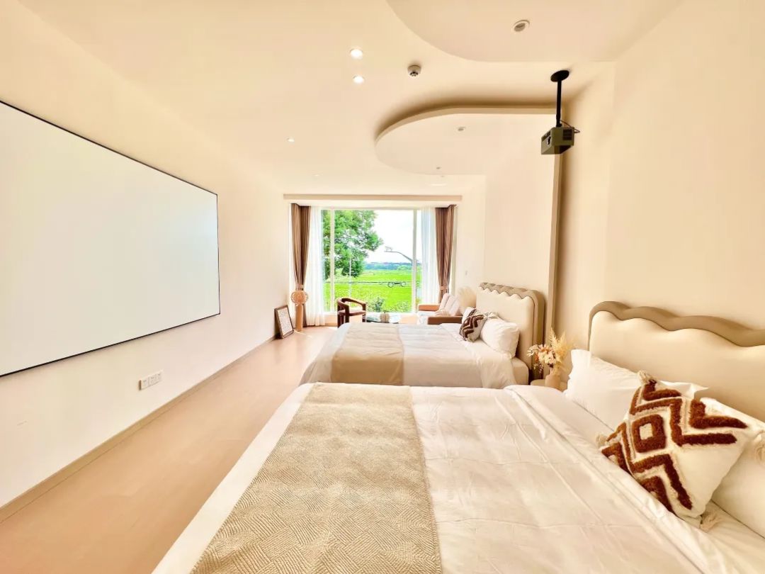 民宿坐落于上海迪士尼国际度假区,民宿利用当地村民的闲置用房进行重新进行设计与规划,运用周边自然环境加以巧妙改造与维护,缔造出别具一格的自然、简约、静谧的休闲生活空间。 她是民宿,也是集旅游度假、休闲聚会与民俗体验为一体的旅游文化产业。我们提供24小时监控防护、房内超大投影巨屏、大金中央空调、24小时热水系统、千兆高速宽带,全覆盖WIFI。 我们拥有比拟高端酒店配置的卫浴用品和舒适的床品,并且每日有专业布草公司进行清洗、消毒和熨烫。我们的专业团队致力于为每位顾客提供贴心周到的超星级酒店式服务,让您的旅途全无后顾之忧。 愿你被清风唤醒,抬眼葱绿。 身心肆意,徜徉幽静。 愿您体验有喵,不止Once。