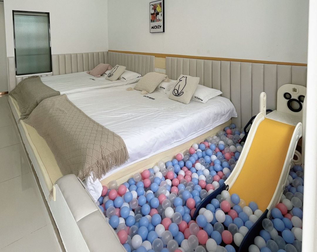 晚风 尊享独立庭院海洋球滑梯双床房 · 家庭影院 麻将 泳池 秋千 喷泉 儿童滑梯 旋转木马