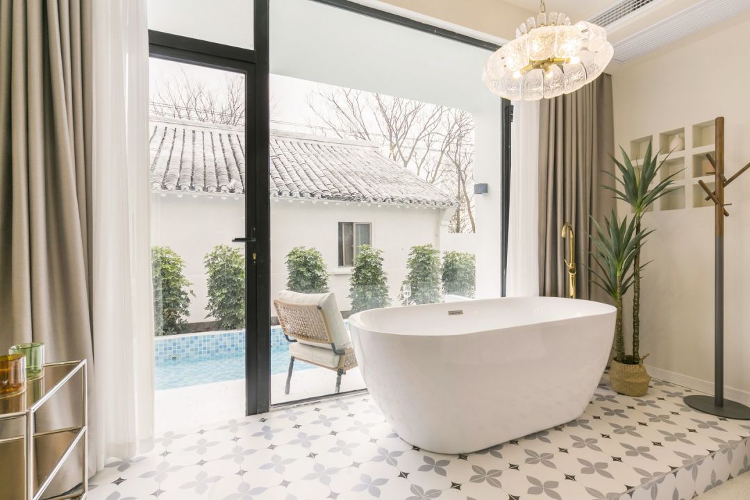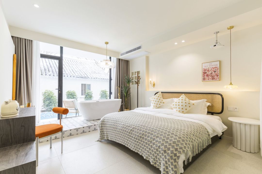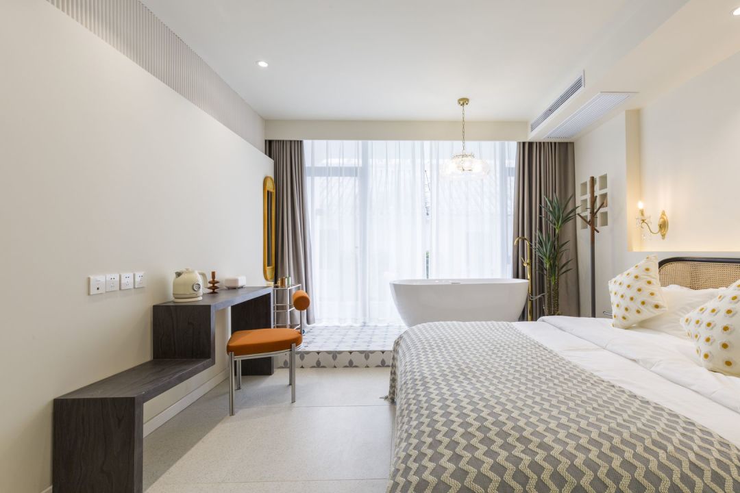 漫花-温馨大床房 · 亲水平台 舒适浴缸 巨幕投影